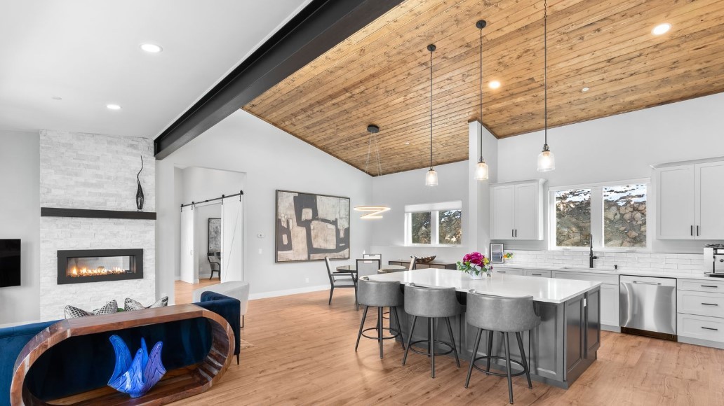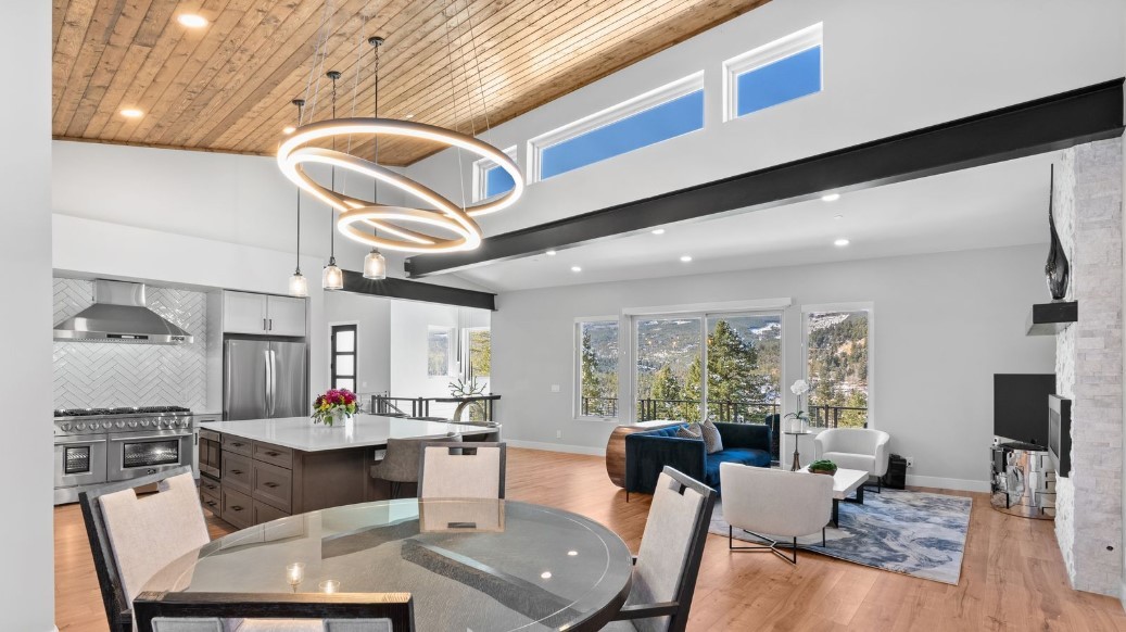 Nestled majestically against the backdrop of the breathtaking mountains, this property is the epitome of luxury living. Completed in 2023, this private haven boasts an expansive 3400 sqft of the meticulously crafted living space, featuring 3 bedrooms, 3 baths, an office, and a gym area/flex space. As you step inside to the masterfully designed open floor plan, with in-floor radiant heat, seamlessly flows together to create the perfect space for entertaining. The heart of this masterpiece is undoubtedly the kitchen. The oversized quartz island, soft-close custom cabinetry, and top-tier stainless steel appliances create an extraordinary culinary sanctuary. The living and dining areas seamlessly blend into the kitchen, creating a space that beckons for lively gatherings. The main floor is a haven itself, hosting a generously sized office, a 4-season sitting room, and the rare gem of a main-floor primary suite. Awaken each morning to unparalleled views, and indulge in the opulence of the primary bath—an oasis featuring a freestanding tub, a spacious walk-in shower, and touches like a backlit mirror and floor-to-ceiling custom shelving. Step outside to find an extensive private Trex deck and a stone patio, providing the perfect place for nights beneath the stars. Down the stairs you will find an expansive lower level, housing an oversized living area, a fitness area, and two additional generously appointed bedrooms with a full bathroom. The enchantment of this property extends far beyond its architectural brilliance. This residence stands as a marvel of technological sophistication, featuring cutting-edge amenities that redefine modern living. From the inclusion of Starlink Internet and an electric car charger, to the convenience of remote control blinds, and solar panel system, every facet of contemporary living has been considered. A seamlessly integrated smart home system effortlessly manages everything from door locks to lighting and camera monitoring system.